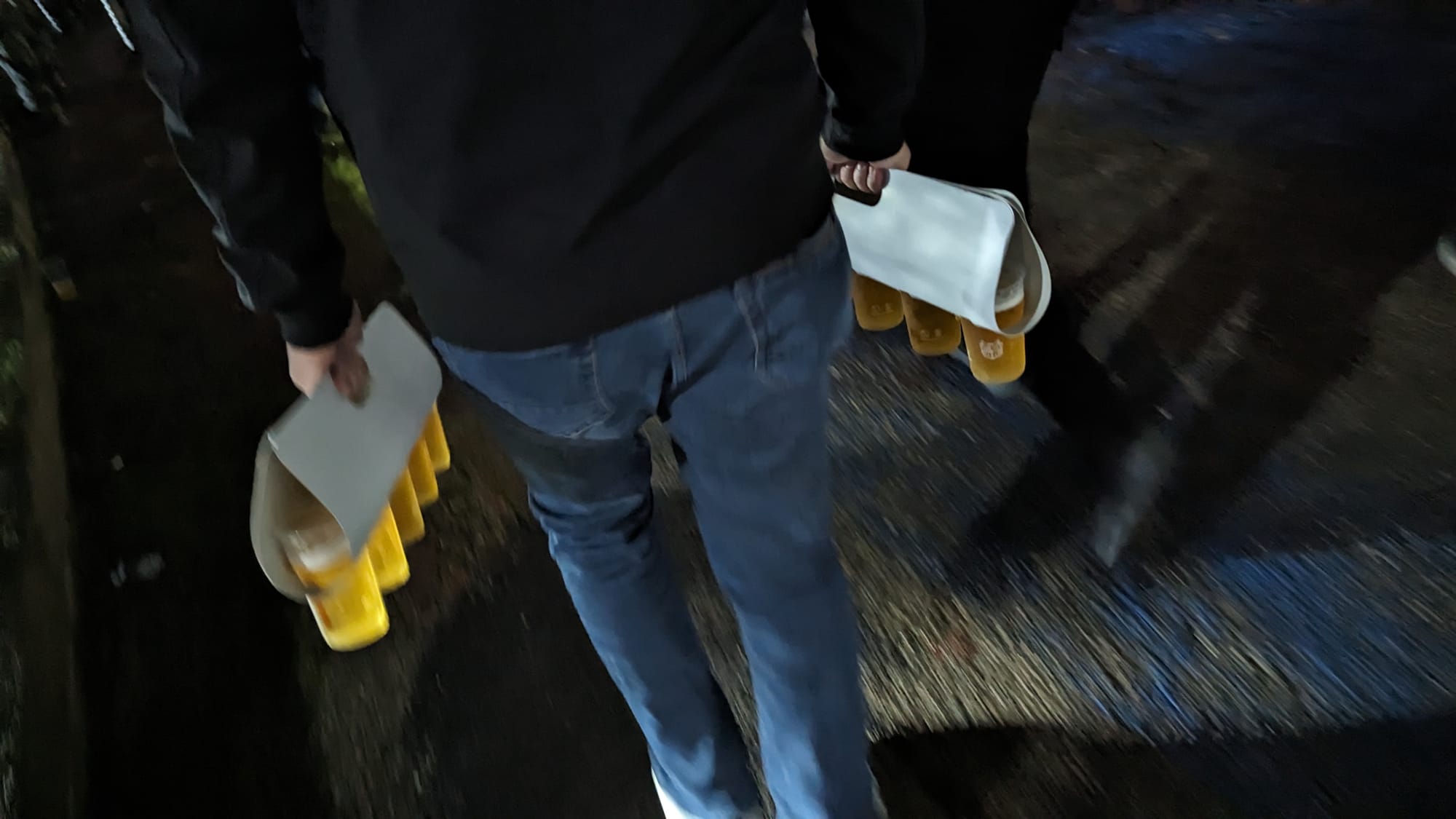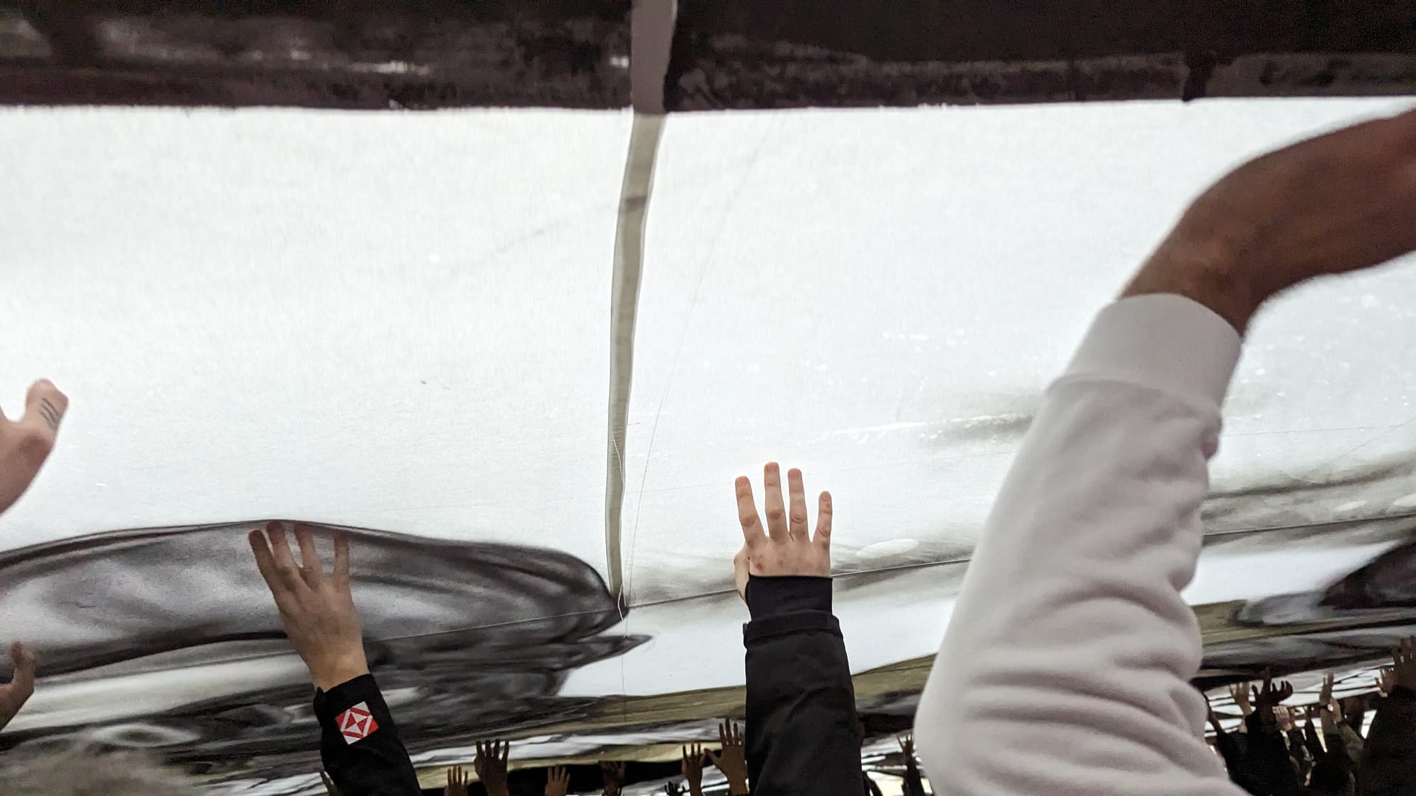 I'm passed through a turnstile, I'm in Zrinjski seats, it is rammed from wall-to-wall in the lower tier. I miss the cage I never got to enter. I'm handed reams and reams of beer to carry for people I do not know through a sea of people I do not know.